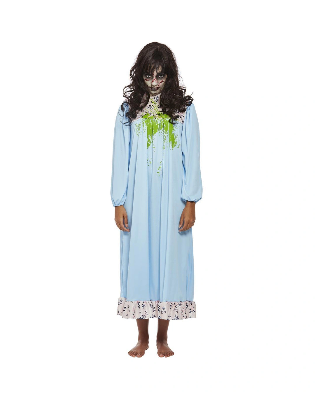 Deine dämonische Verkleidung ist ein langes Nachthemd mit Erbrochenem als Kostüm für Movie-Mottopartys, Karneval & Halloween. Besonders auffällig ist der giftgrüne Kotzfleck, der auf der Vorderseite perfekt zur Geltung kommt. Die Nachthemd Verkleidung ist in Größe S-L verfügbar und besteht aus weichem Material. Bestell unsere Zombie Perücke braun am besten gleich dazu!